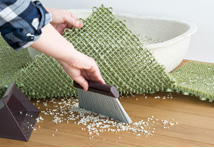 - 飛び散った砂をキャッチトイレ後の砂かきなどによって飛散した砂をしっかりキャッチして逃しません。また、製品を潜り抜けて床に落ちた砂の飛散も防ぎ、お掃除もラクです。床に落ちた砂をお掃除する場合、弊社商品「okichiri」(別売)をご使用頂くとラクにお掃除できます。