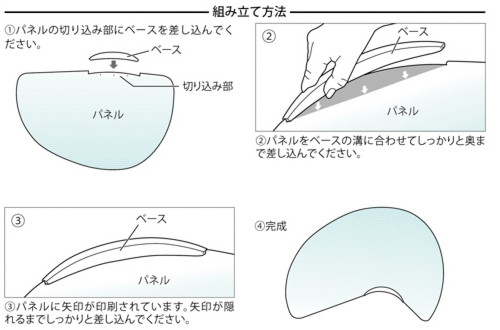 - 組み立ては、パネルを曲げながらベースに差し込むだけです。