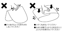 本製品は製品の特性上、非常にデリケートな素材を使用しております。そのため、部分的な加圧や折り曲げにより「折れ痕」および「白化現象」が生じます。お取り扱いにはくれぐれもご注意ください。