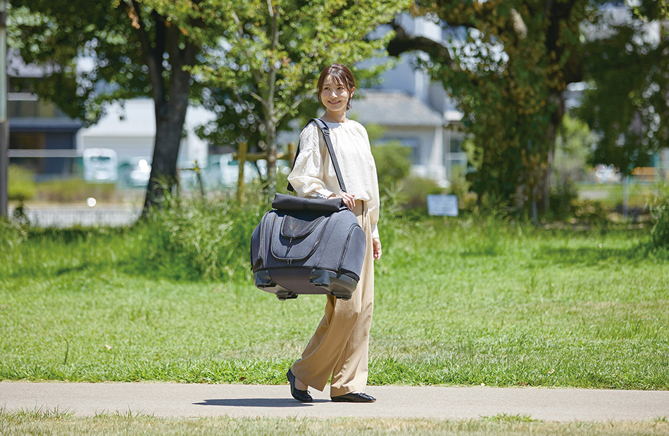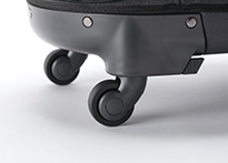 - ●階段や段差のある場所でのキャスターの使用はバッグの破損や使用者の転倒につながる恐れがありますので、バッグの持ち手ベルトを持ってご使用ください。