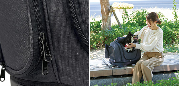 - ●ファスナーを開閉する際にペットや指を挟まないようご注意ください。