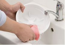洗浄の際は、やわらかいスポンジに食器用洗剤を使用してください。研磨剤入りのスポンジやたわし、クレンザー、漂白剤などを使用しないでください。