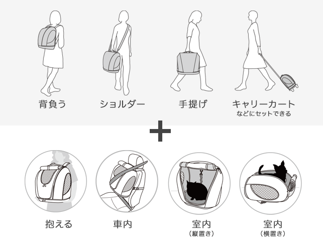 - ●本品は犬・猫専用のキャリーバッグです。用途以外には使用しないでください。