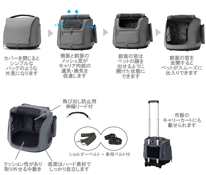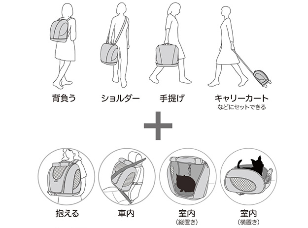 - ●本品は犬・猫専用のキャリーバッグです。用途以外には使用しないでください。