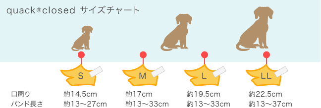 | quack®closed LLサイズビーグル、プードル など | 約22.5cm | 約13~37㎝ | 125g | ¥3,850 |