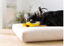 - 目の部分が大きくえぐられているので、チワワのように目のくぼみが浅くもともと眼球が外に出ているワンちゃんにも配慮されています。