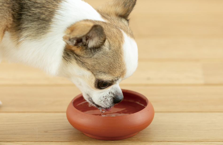 犬用水飲み(トコボウル・フォーウオーター)器表面から水分が揮発するため、気化熱によって水温が変わりにくい呼吸する器