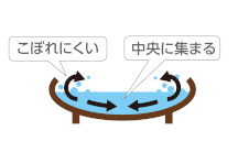 また、すり鉢状になっているため水が減ると中央に集められることで外への水跳ねが軽減されます。